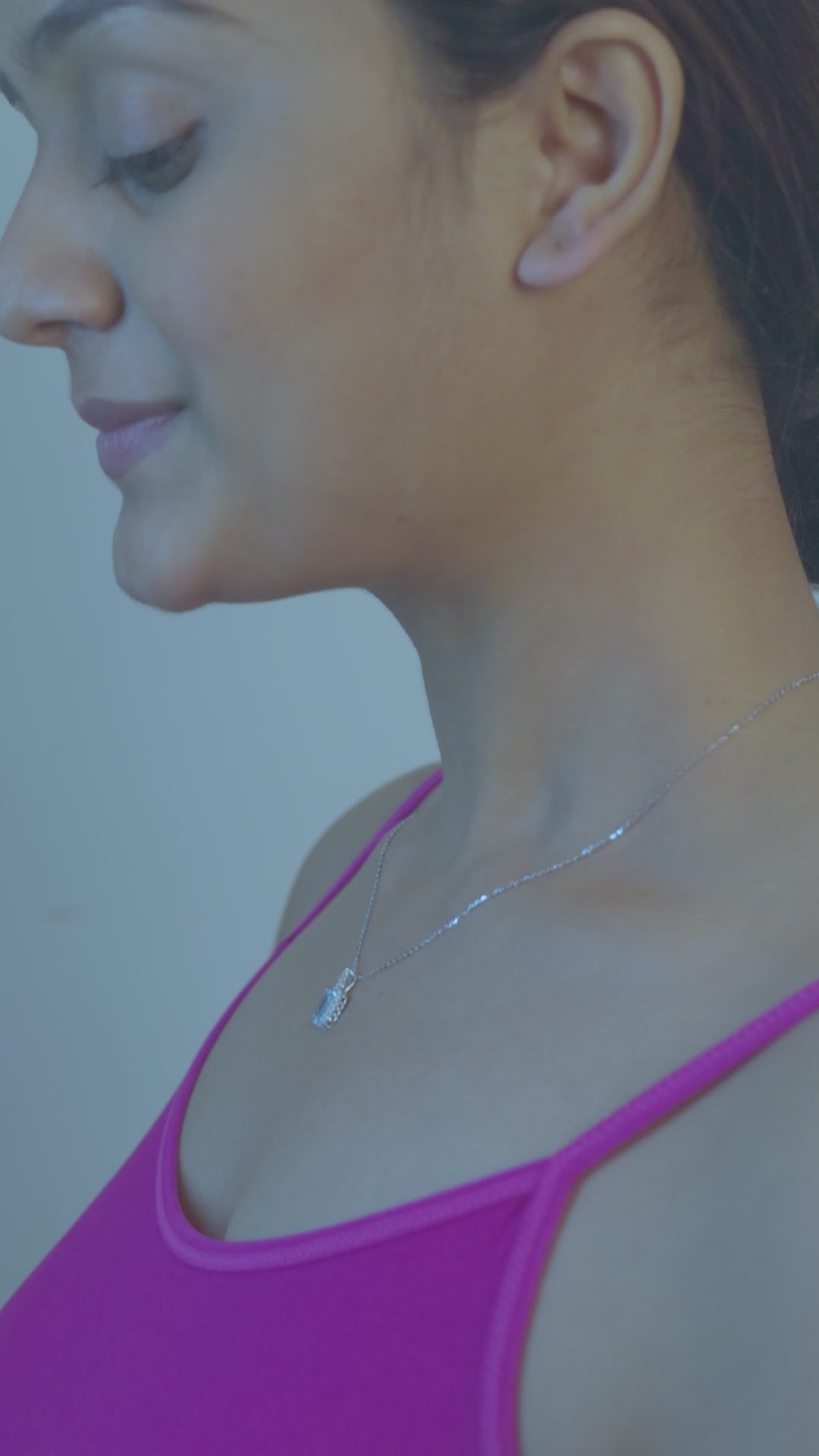 Shine with sophistication wearing the Elegant Blue Topaz Halo Necklace — a stunning design that blends a vibrant gemstone with radiant sparkle. Featuring a rectangular blue topaz center stone surrounded by a halo of pavé-set diamonds, set in a polished silver chain, this necklace offers a perfect fusion of bold color and timeless elegance, tailored for the Indian market.