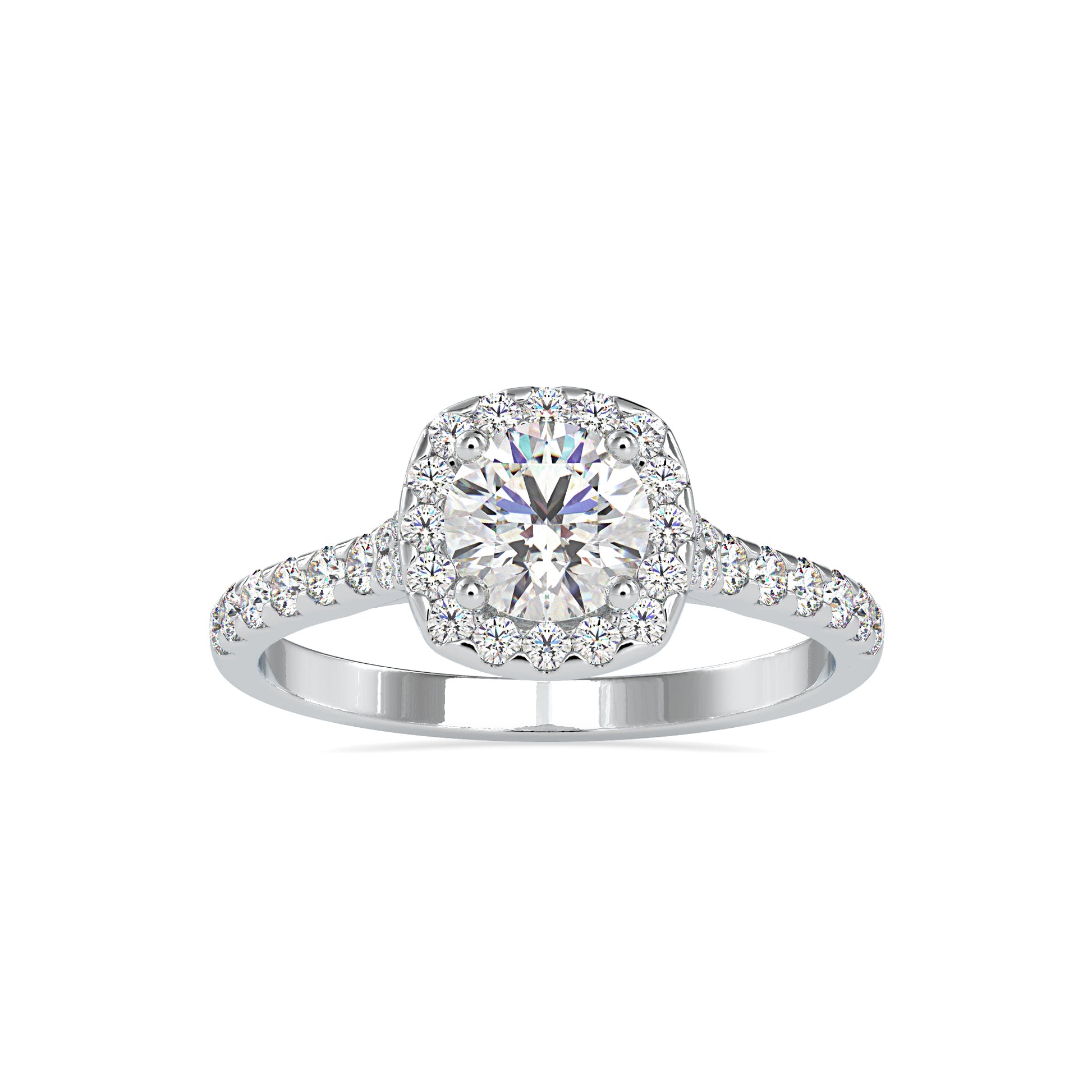 Cushion Halo Design: A halo of dazzling round diamonds enhances the brilliance of the central stone for a luxurious sparkle.