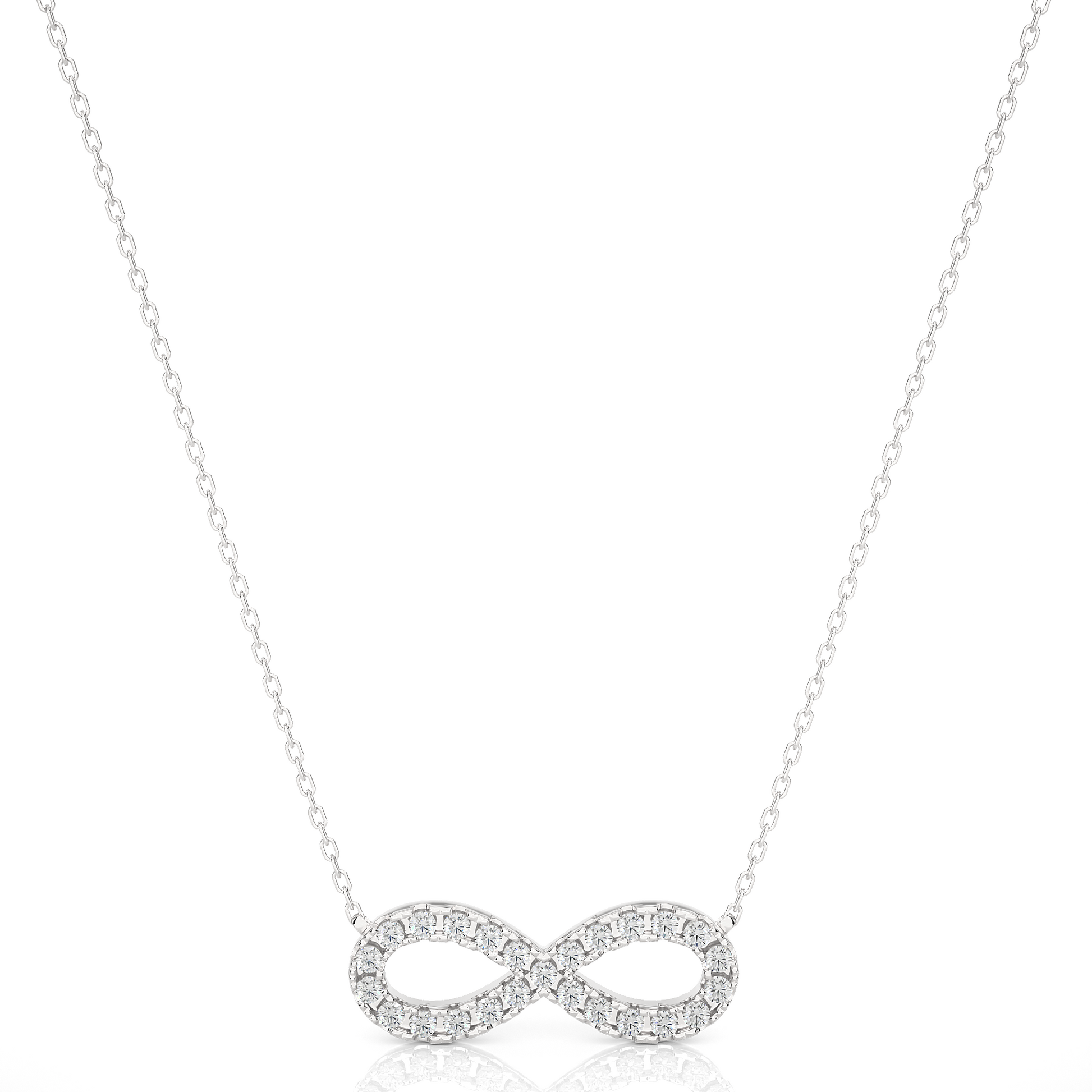 Celebrate endless love with the Eternal Infinity Diamond Necklace — a chic design that blends an infinity symbol with dazzling brilliance. Featuring an infinity-shaped pendant encrusted with pavé-set diamonds, set in a polished silver chain, this necklace offers a perfect fusion of modern symbolism and timeless elegance, tailored for the Indian market.