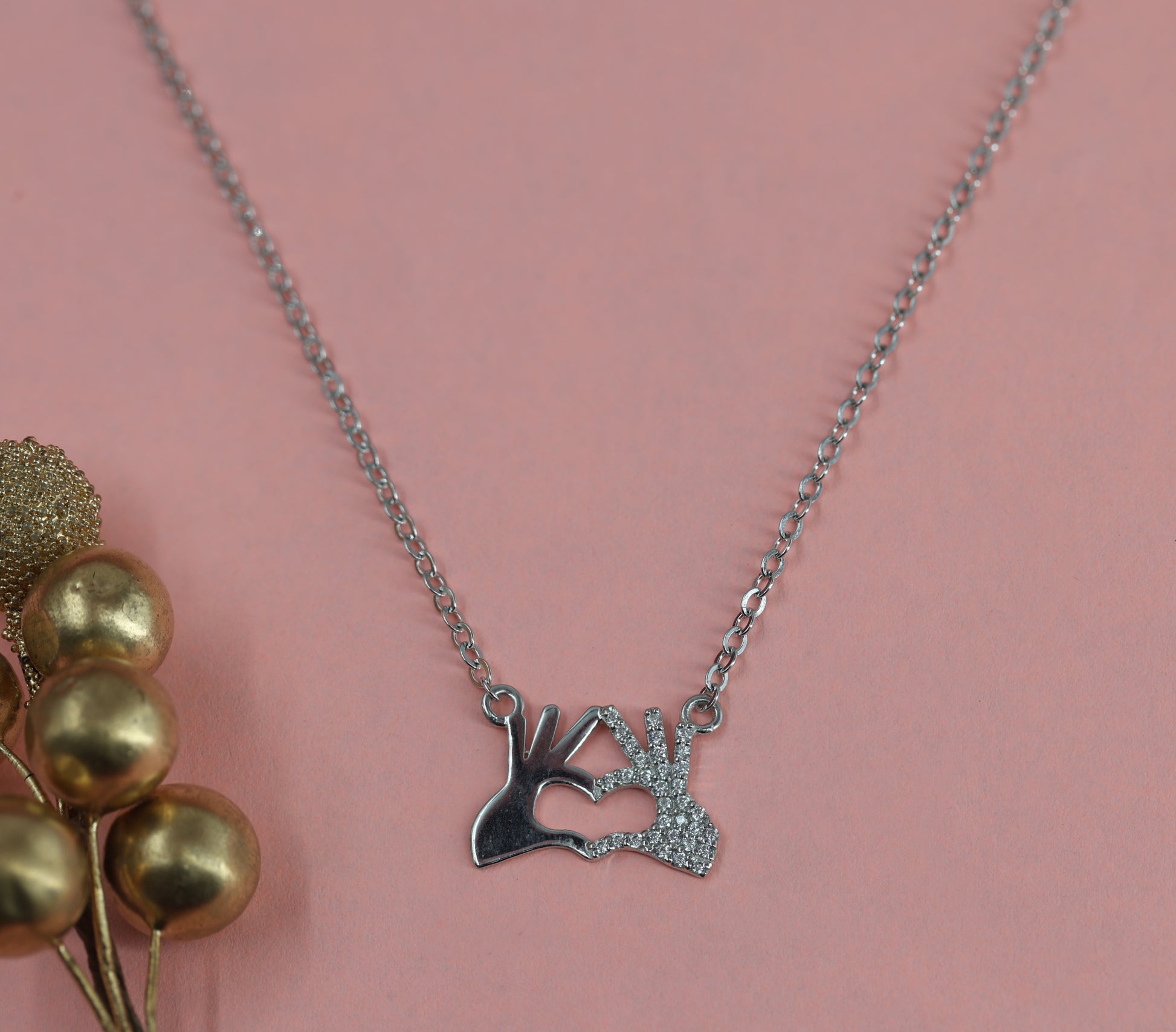 Hand-Shaped Heart Pendant: A unique design with two hands forming a heart shape.