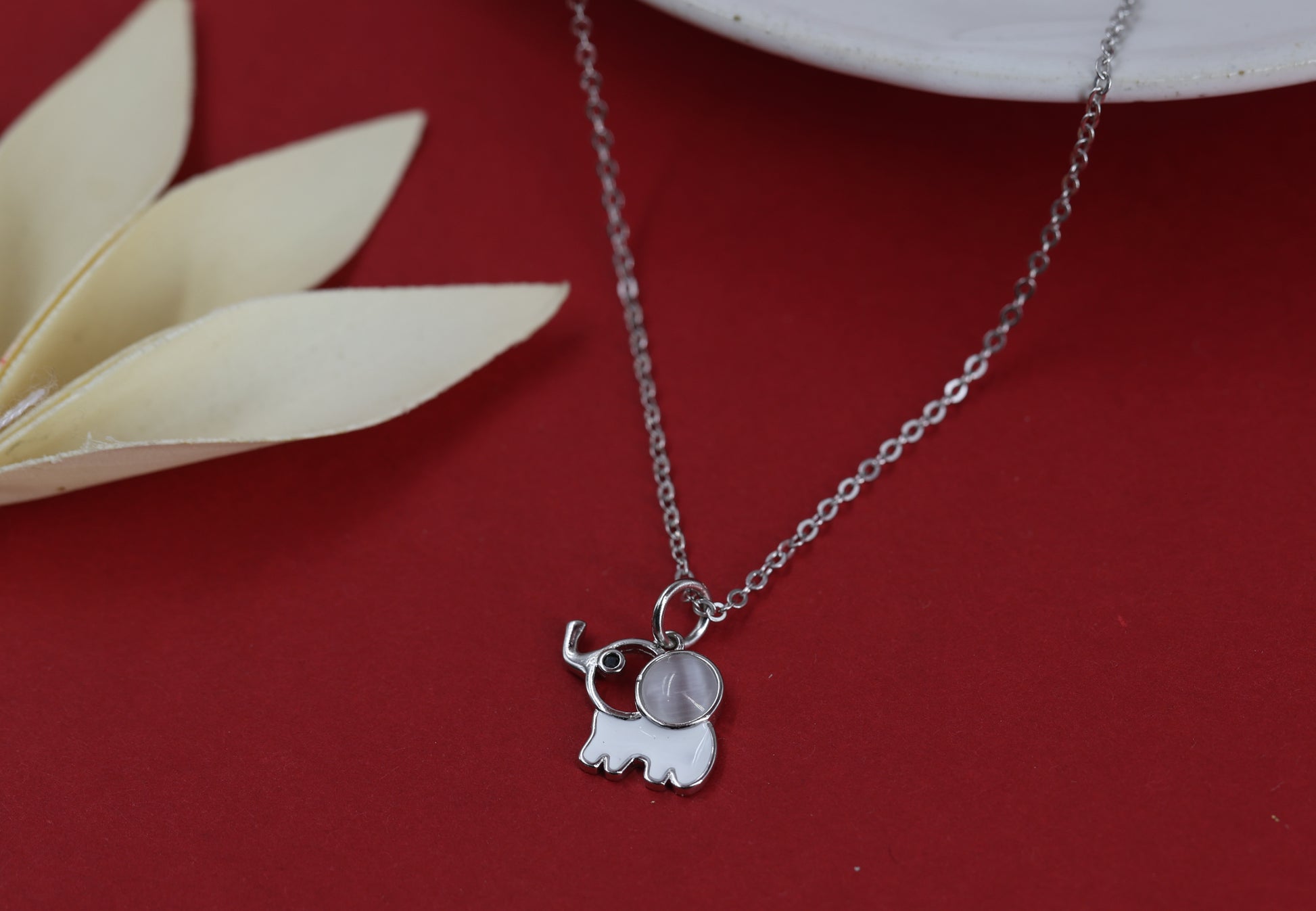 Embrace good fortune with the Lucky Elephant Moonstone Necklace — a charming design that blends an elephant motif with a touch of shimmer. Featuring an elephant-shaped pendant with a moonstone accent and a small diamond on the trunk, set in a polished silver chain, this necklace offers a perfect fusion of symbolic meaning and elegant style, tailored for the Indian market.