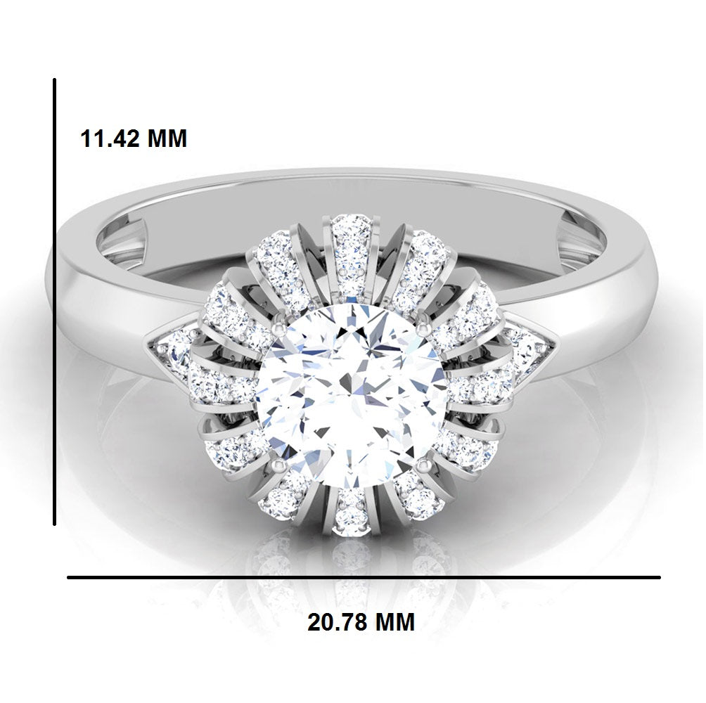 Cushion Halo Setting: A striking round-cut center stone encircled by a petal-shaped halo, enhancing sparkle and depth.