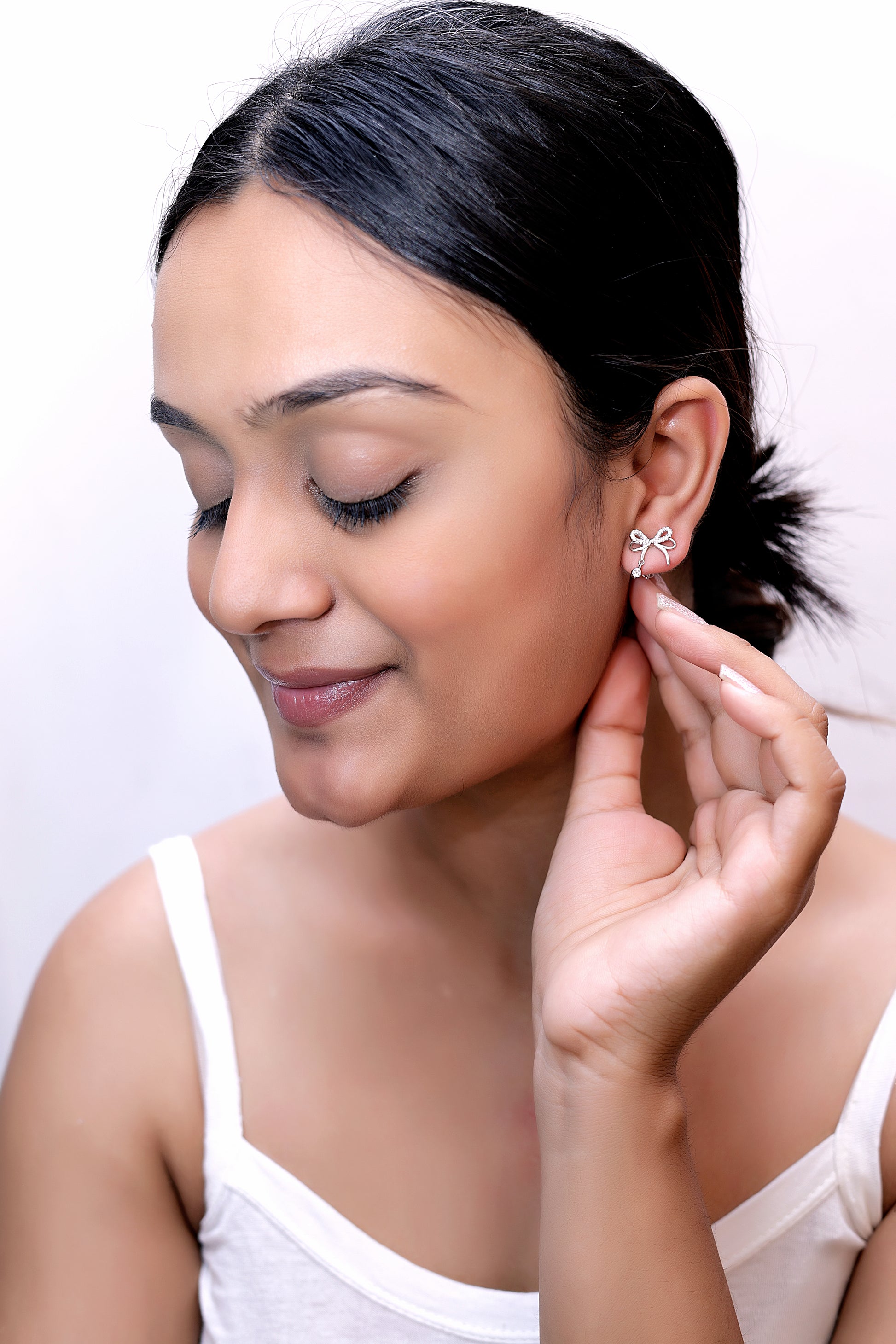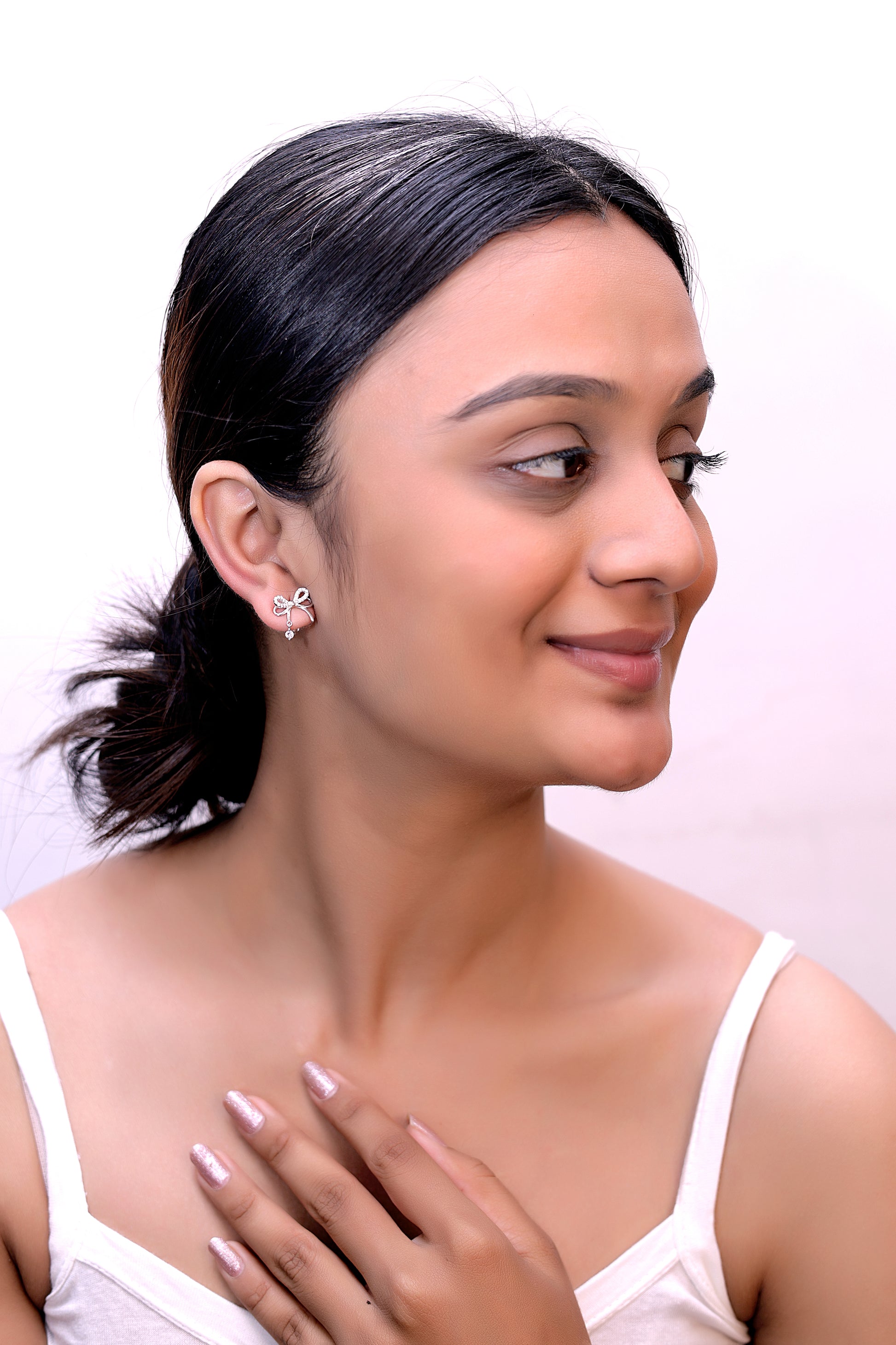 Bow Design with Cubic Zirconia: A charming bow adorned with brilliant stones for a dazzling effect.