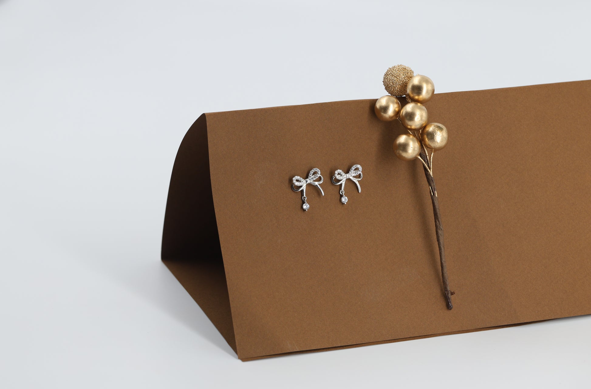 Add a touch of glamour to your everyday look with the Trendy Bow Dangle Earrings, a must-have accessory for the modern Indian fashionista. These elegant earrings feature a delicate bow design with sparkling cubic zirconia stones set in a sleek silver finish, complemented by a dangling accent for added charm. Paired with a rustic brown card and adorned with golden beaded accents, this set brings a fusion of tradition and trendiness to your jewelry collection.