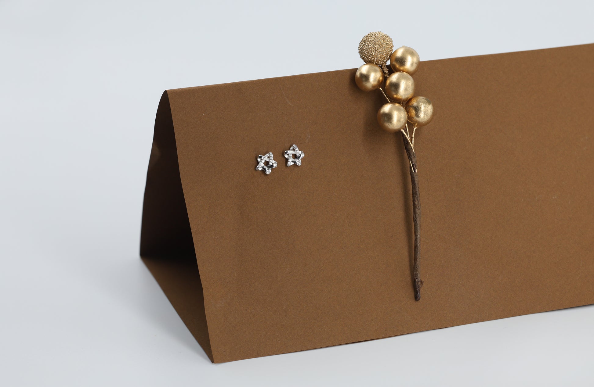 Add a touch of glamour to your everyday look with the Trendy Star Stud Earrings, a must-have accessory for the modern Indian fashionista. These elegant earrings feature a delicate star design with subtle cubic zirconia accents set in a sleek silver finish, blending celestial charm with timeless elegance. Paired with a rustic brown card and adorned with golden beaded accents, this set brings a fusion of tradition and trendiness to your jewelry collection.
