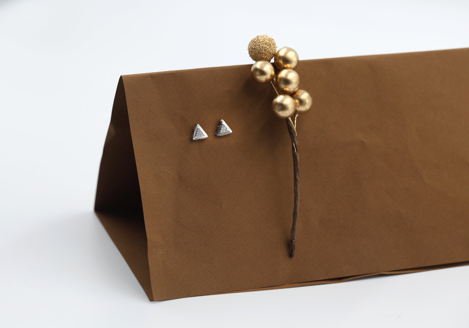 Add a touch of glamour to your everyday look with the Trendy Triangle Stud Earrings, a must-have accessory for the modern Indian fashionista. These elegant earrings feature a delicate triangle design with subtle cubic zirconia accents set in a sleek silver finish, blending geometric charm with timeless elegance. Paired with a rustic brown card and adorned with golden beaded accents, this set brings a fusion of tradition and trendiness to your jewelry collection.